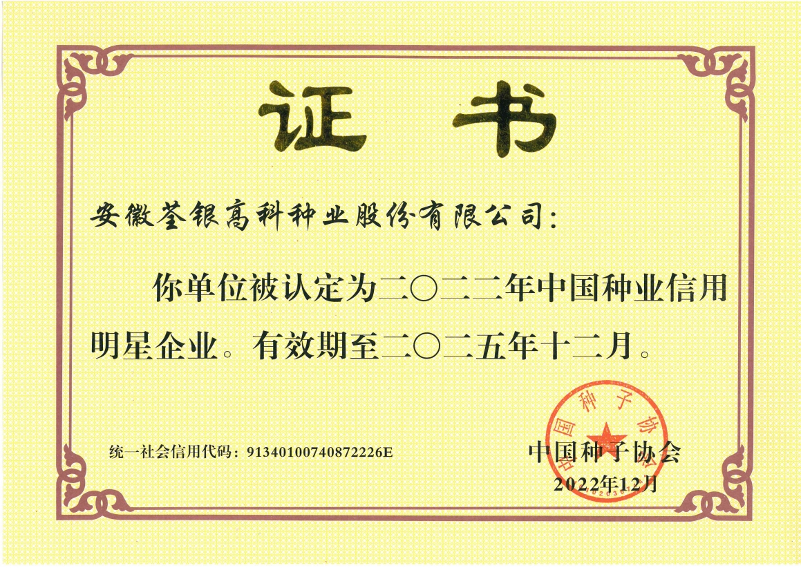 中國(guó)種業(yè)信用骨干企業(yè)